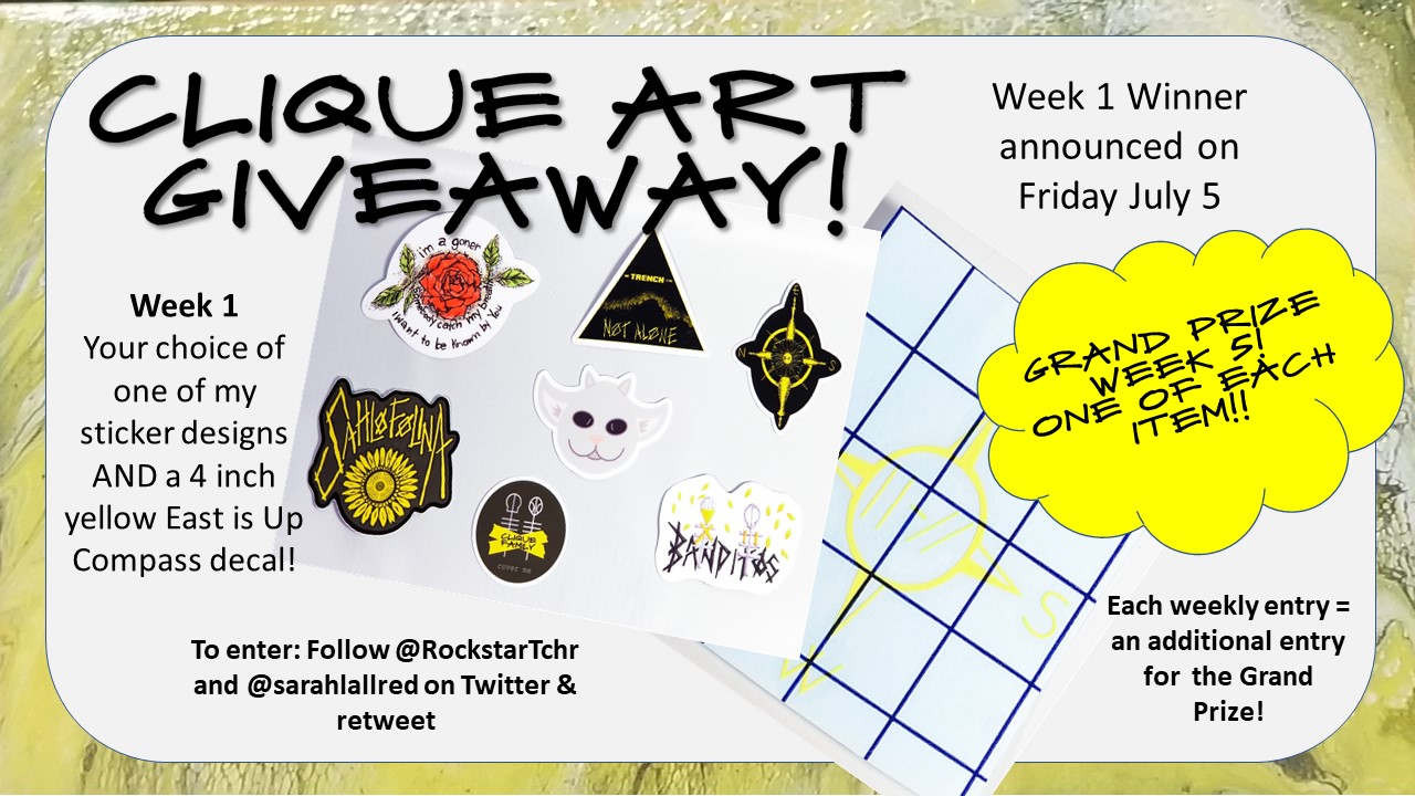To enter, follow @RockStarTchr and @sarahlallred on Twitter and retweet the post. To gain additional entries for the Grand Prize, enter each of the smaller weekly giveaways as well.